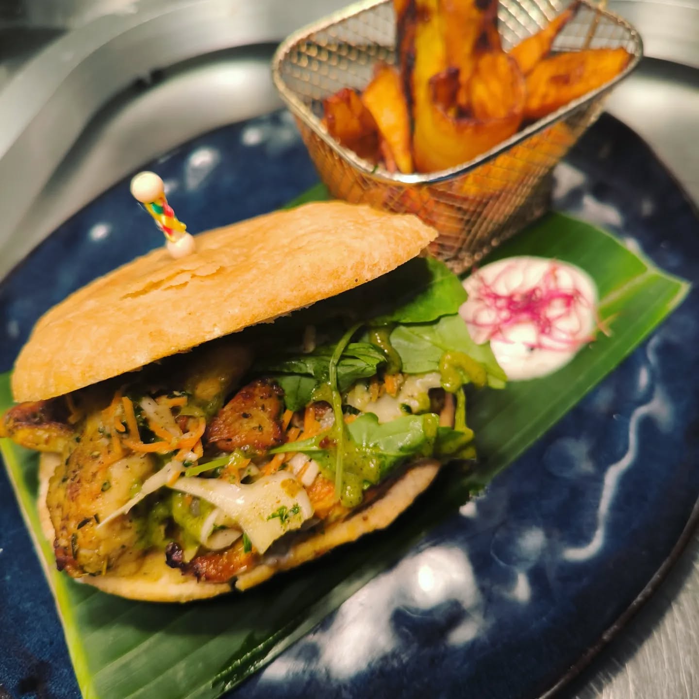 Le sandwich iconique des Antilles : un pain frit à l'encre de seiche croustillant à l’extérieur et moelleux à l’intérieur, généreusement garni de saumon fumé avocat, accompagné de crudités fraîches et de sauce maison.18,00 €18,00 EUR